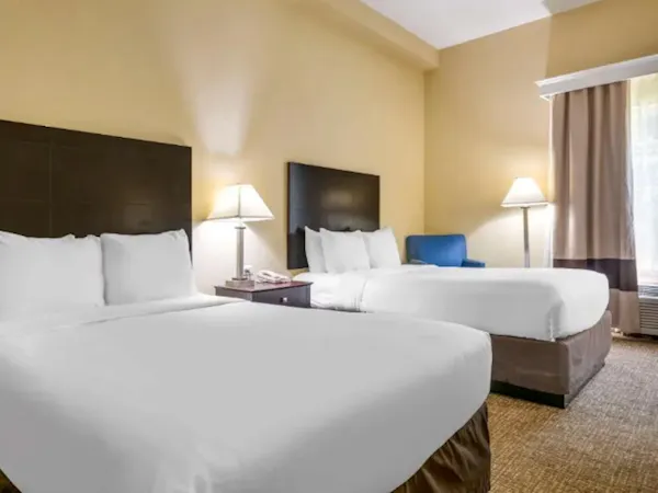 This accessible room offers two spacious queen-size beds and is thoughtfully designed to accommodate guests with disabilities. Features include ADA-compliant amenities, accessible bathroom, and ample space for comfort and convenience.
