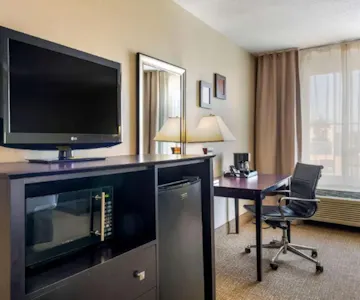 This room features two comfortable full-size beds, ideal for families or groups of up to four guests. Enjoy a relaxing stay with essential amenities for a convenient and restful experience.